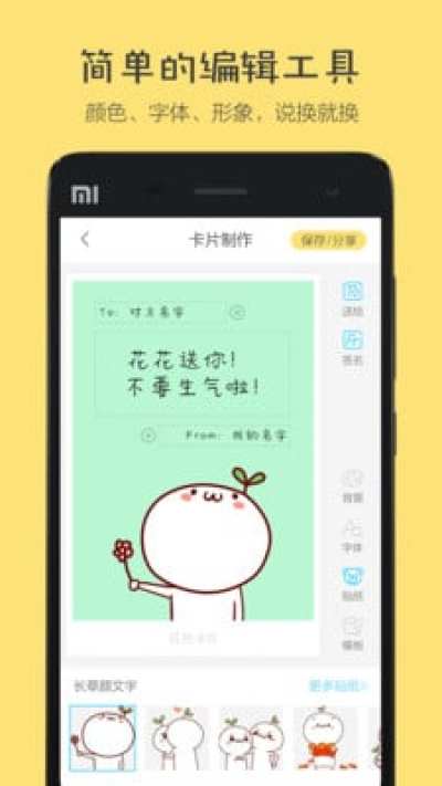 1、和其他贺卡应用不同,花熊卡片有海量动漫贴纸,画风呆萌。