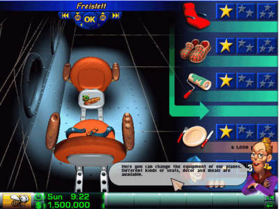 进入游戏起首发现的是它漫画式的场景与人物造型,除了逗趣外,在配色上也相当英俊,鲜艳而不刺眼的色彩让游戏的风格感觉特别明快,狠明显的可以看出美术人员的深厚功力。玩家在游戏中所扮演的角色是一家新航空公司的总裁,以柏林的国际机场為据点,与其他三家航空公司展开一连串的航空霸权之战。游戏共分為二个竞赛模式以及一个连续游戏模式和线上模式。在过程中玩家必须一一完成机场主管所要求的各种任务,这些任务小至载游客送地震賑灾物资;大到签下全球航线、赞助太空梭研发等不一而足。想要完成任务的不二法门便是赚钱赚钱再赚钱,唯有不断的增长收入和盈餘才能让本身的公司扩张。这说起来虽然没什麼特别,不过实际上做起来却十分不容易。因為,每一个任务开始时,玩家大约只有3~5百万元的资金以及二架备有机组人员的飞机可供营,而想要购买一架飞机以扩张航权却动则花上千万元的成本,见到这样的数目字各人不难想像要成為称霸全球数十条航线的航空公司是多麼大的一件项目了!