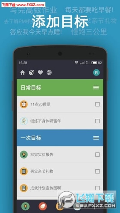 【目标】: 除了工作、学习、运动、健身、闹钟,你还可以添加其它各种各样的目标。