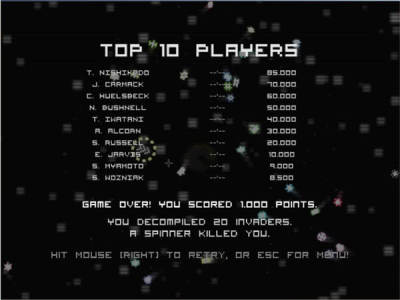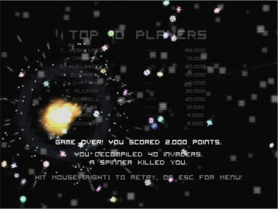 入侵者堕落 操作指南↑W、↓S、←A、→D、按住鼠标左键发射子弹。操作性不是很难。游戏感觉很不错,花面色彩再配上激情的音乐,整个人一下子精神起来~~忽忽。。。不知道还有没有类似这样的2D射击游戏有没有这样经典的游戏 感觉还是很不错~~。很有挑战性的一款2D射击类游戏。大家可以亲自体验下!