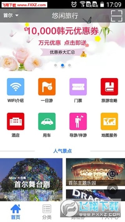 韩国WIFI领取,酒店,用车,门票,导游/伴游,购物,特惠,地图等,同时还有图片+文字形式的韩国文化宣传版块。