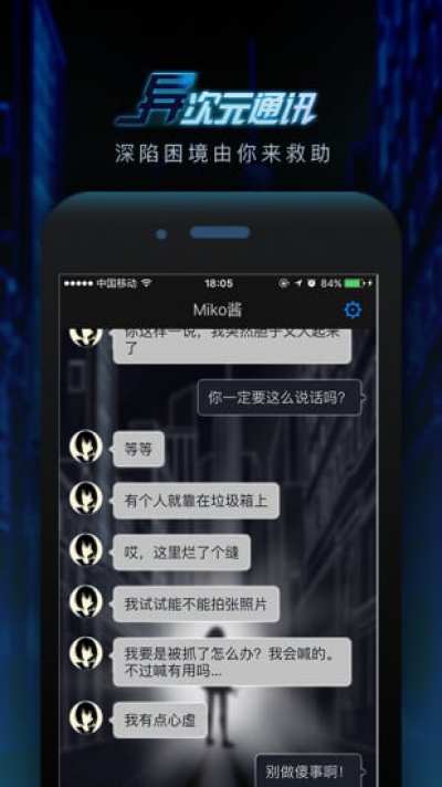 异次元通讯是一款充满冒险与刺激的即时通讯娱乐应用,以实时通讯模式展现,通过移动端提供对话体验,而你将决定主人公的命运。