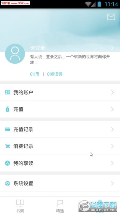 【界面清晰】主菜单包含书架页,精选页,我的三个专区,在线阅读、离线下载、随看随藏,操作简便易上手,界面来回切换,自由畅读;