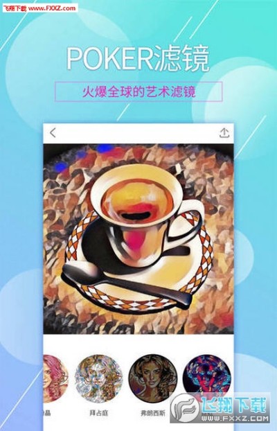 POKER艺术滤镜由移动互联网摄影第一品牌Camera360官方网站推出的,POKER滤镜相机是一款免费的艺术相机,它的主要特色就是通过人工智能把普通的自拍照和头像照片模仿出绘画大师的艺术画作风格。这款POKER滤镜相机拥有多种特效,想怎么用就怎么用,使用POKER滤镜相机让你的照片分分钟变成大师级作品,赶紧来下载吧!