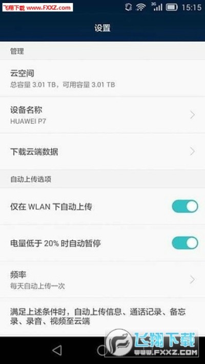 3.短信、通话记录、备忘录、照片、录音、视频自动上传到云端,在云端保存一份最新最全的数据,以备不时之需。