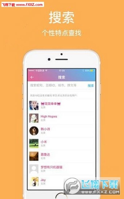 2、用户可以使用首页随机发现和搜索特定关键词。自动记录浏览过的对象,对感兴趣的对象可以暂时收藏,合适的时间再发豆邮联系。