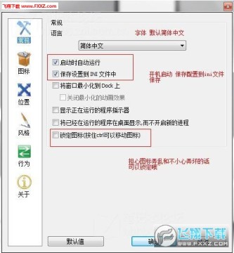 软件设置好自己喜欢的风格后,调到适当的位置/大小 在设置开启启动