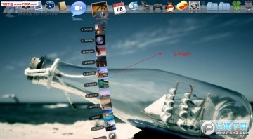 第四步:运行RocketDock这个软件 正常安装的话 你的图标会在桌面上 桌面双击打开即可 会出现MAC风格的RocketDock。