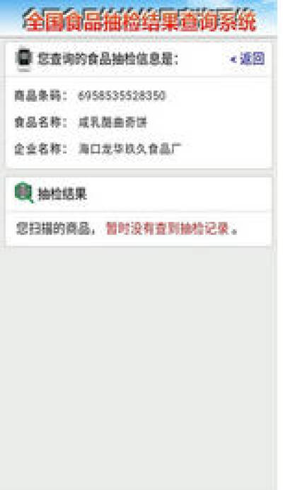 三是可通过扫描商品条形码进行查询。查询结果按照“抽检结果全部合格的产品”和“抽检结果出现不合格的产品”两个板块依序显示。