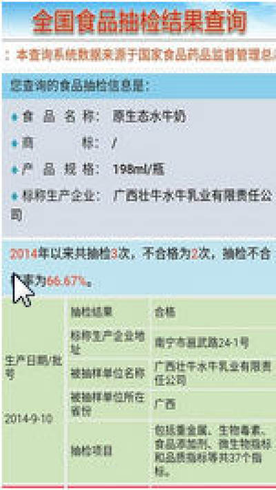 一是通过输入食品名称,快速找到其查询的食品抽检结果,例如:输入“XX(品牌)”,可列出该品牌产品的抽检结果,或者输入“酸奶”可列出食品名称含有“酸奶”字样产品的抽检结果;