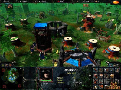 全3D画面风格和魔兽很相似,不过游戏的主题是一万年前的原始部落,画面背景和原始人类的风格让人感到别有风味。游戏场景颜色艳丽多变,虽然容量不大,但画面表现不错。