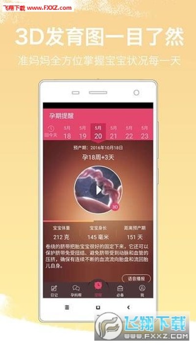 2、孕妈妈每天都可以通过本应用了解到胎儿的变化、孕妇的生理变化、注意事项、小提醒等等。此外软件还提供怀孕期间所需要准备的物品清单和待产包列表,帮助你更好的做好怀孕、生产的各项准备。
