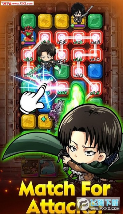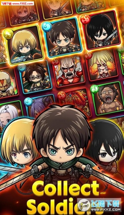 PMQ进击的巨人是一款非常炫酷而且激情的消除类rpg手游,游戏采用进击的巨人为背景,玩家的任务就是消灭各种各样的怪物,虽然游戏中的玩法是人物成长rpg,但是操作模式却是消除,让游戏的游戏性得到全面的升华,是不是很感兴趣呢?喜欢的欢迎下载哦!