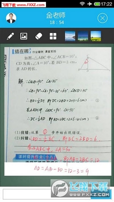1.名师一对一:拍下难题,呼叫老师后,随即进入一对一小课堂。学生与老师之间语音通话,并通过电子白板,板书互动,分析难点,解决难题。