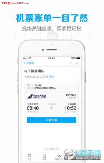 - 机票、酒店和账单邮件卡片式设计,重要信息一目了然。