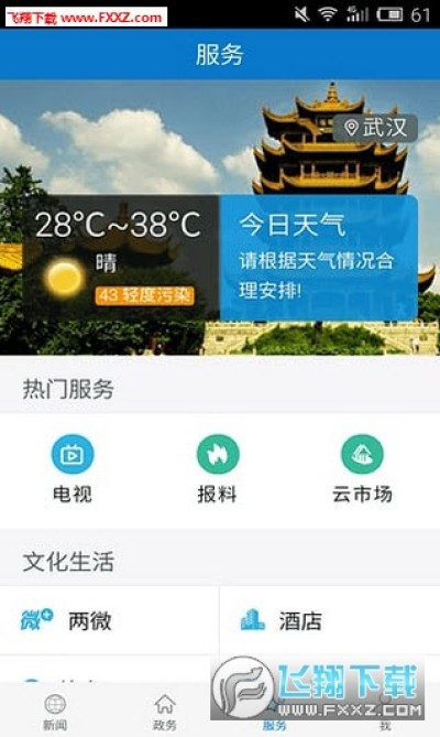 它拥有简洁的设计、明快的风格,整合了湖北省内、江岸区内的新闻、政务、服务等功能,是一款致力于对新闻资讯、时事政务与文化生活进行传播的应用。