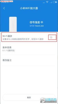 第七步:可在智能家庭APP中点击小米WiFi放大器后,设置漫游(把小米WiFi放大器的WiFi信号设置成和主路由器信号的名称一样)。