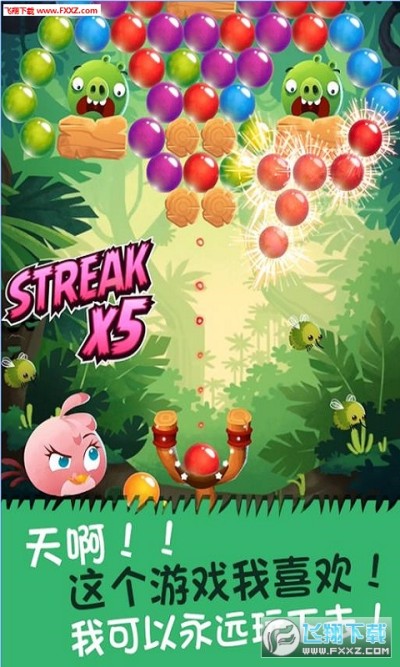 游戏在物理弹射玩法的基础上进行巧妙革新,与泡泡碰撞消除的经典玩法进行完美融合。游戏的过关规则很简单,在指定的步数,或是消除所有的泡泡,或是解救所有被困住的动物,还有打落泡泡上的绿皮猪等多种任务。