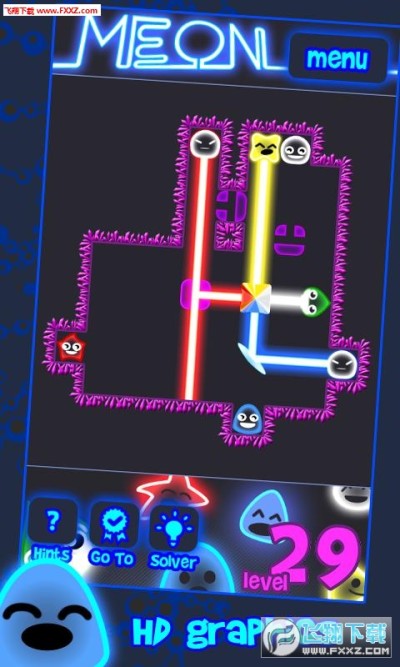 一款基于光线反射原理的益智游戏,玩家需要使用棱镜、属性透镜、折光器等工具,把那些激光精灵全部唤醒过来! 1997,东京量子力学研究所的Tagishaki发现了一个基本粒子,他称之为Meons,姑且算是这个游戏的科学依据吧。