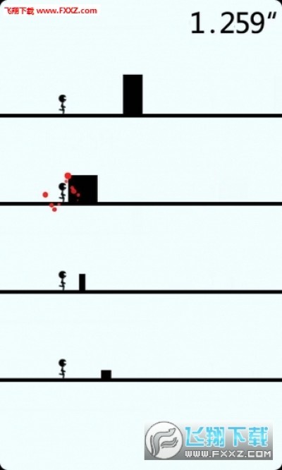 《小黑人障碍赛》安卓版是一个类似跨栏运动的小游戏,小黑人在不停的奔跑,前面会有高度不等的障碍物,点击屏幕小黑人会跳跃躲避障碍物,游戏有三个不同的难度,不同的级别小黑人个数不等,玩家可以根据自己水平选择适合自己的难度,奔跑时间越长就很厉害!