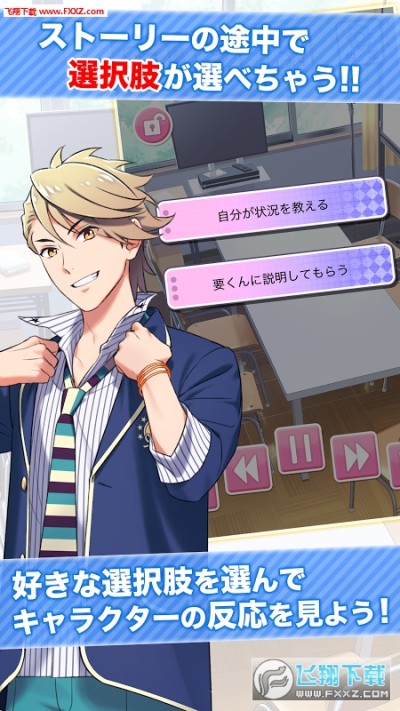 该游戏需要玩家使用到耳机来体验立体声,感受帅哥部员们近在咫尺的心跳感!当然,游戏不只有听,剧情途中会出现选项,选择自己喜欢的选项,就能够看到角色们相应的反应。