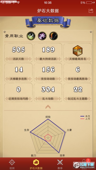 想知道自己的炉石实力能打败全国多少玩家?想与好友们比拼各式游戏数据?想查漏补缺,了解自己的长处和不足?随身炉石传说为你打造了专属页面,常用英雄、天梯排名、竞技场战绩……各种精确的数据统计帮助你全面了解自身实力,早日进军传说。
