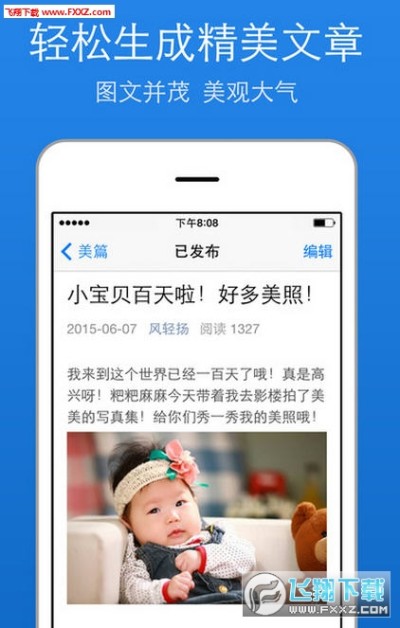 这款美篇app的核心功能很不错,微信目前公众号只能在PC上编辑,这个在手机上就能直接编写,很方便。照片显示图大,又能撰写文字,图文并茂再配上音乐,可以有机结合成令人羡慕的音乐相册,同时也可以记录生活的散记。非常棒的软件!