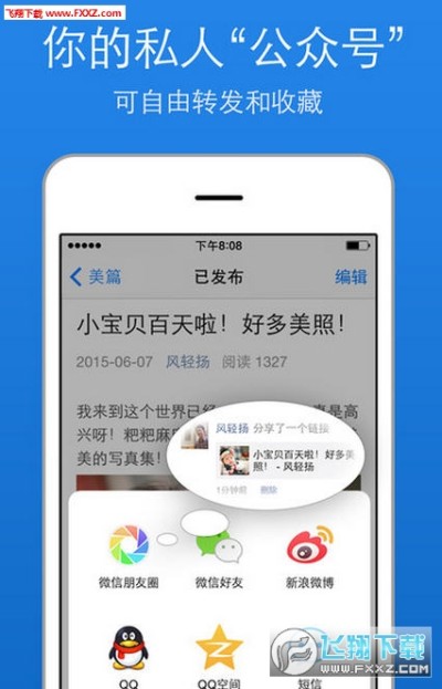 3.支持分享到微信好友、朋友圈、新浪微博、QQ。