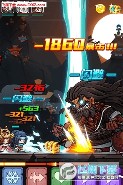 游戏独创了极其新颖有趣的技能消除碰撞大招玩法。多个武将组合上阵,进入战斗后,每隔一段时间会按照谋系、力系、敏系、智系等不同系别生成技能方块,相同的方块之间可以链接出1消、2消、3消三种形式,越多的方块链释放的时候能够产生更大威力和更多怒气。一旦怒气值满,还可以释放华丽的怒气大招,全屏极致秒杀。