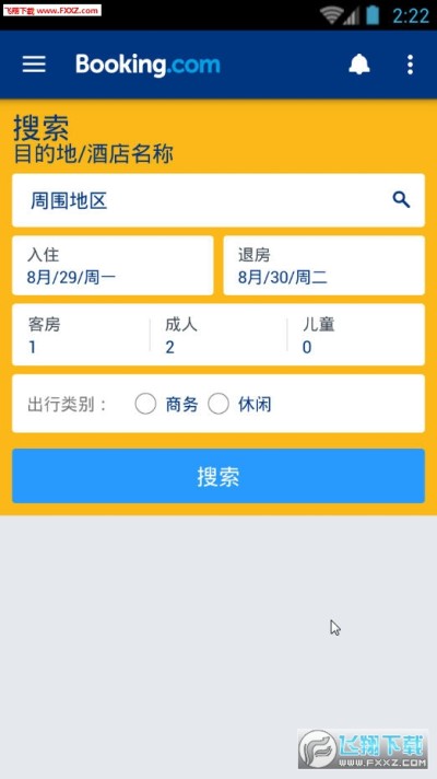 输入城市、地标、酒店名称、或寻找附近住宿,轻点一下开始搜索。