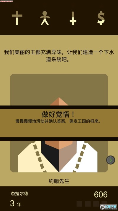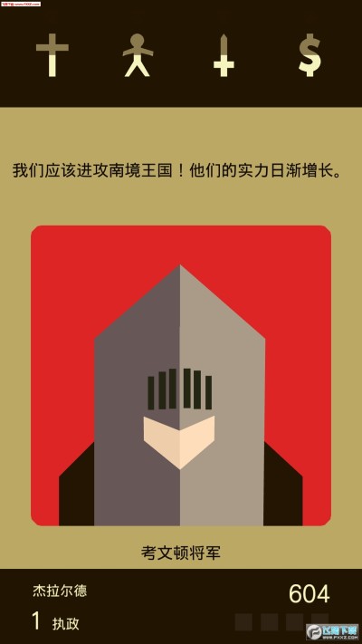 本作是一款简单上手的卡牌策略游戏,玩家可以通过自己的智慧来改写王国的命运。游戏以年为单位进行,游戏中每年玩家都可以使用卡牌做出不同的动作,而这些动作将会对王国发展造成影响。玩家可以选择派军出征,也可以生下继承人,或者是发展国家的经济、安稳民心。