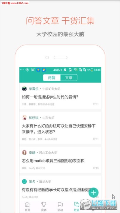1、精华资讯推荐:精选能为大学生未来成长带来帮助的高质量文章,涵盖赛事、人物、考研、保研、招聘、影视、生活、科技,听听过来人的想法,看看外面的世界。只为愿意奋斗的大学生推荐!