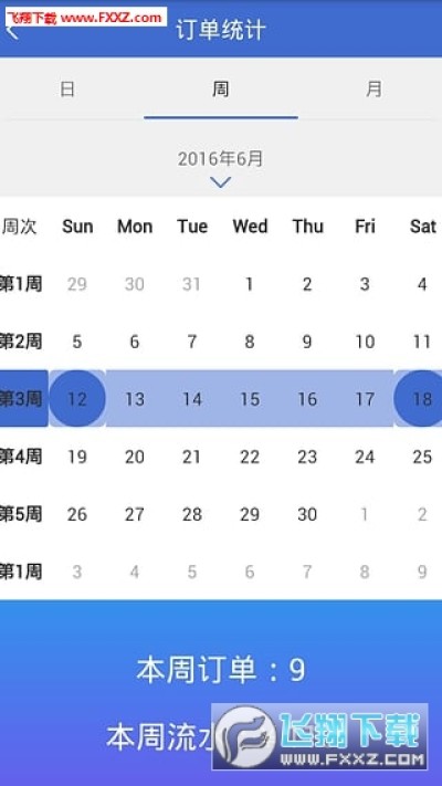 3、订单统计:分日,周,月,进行订单总数,订单金额的查看