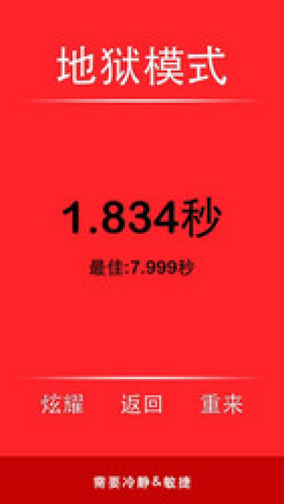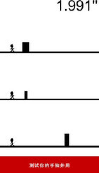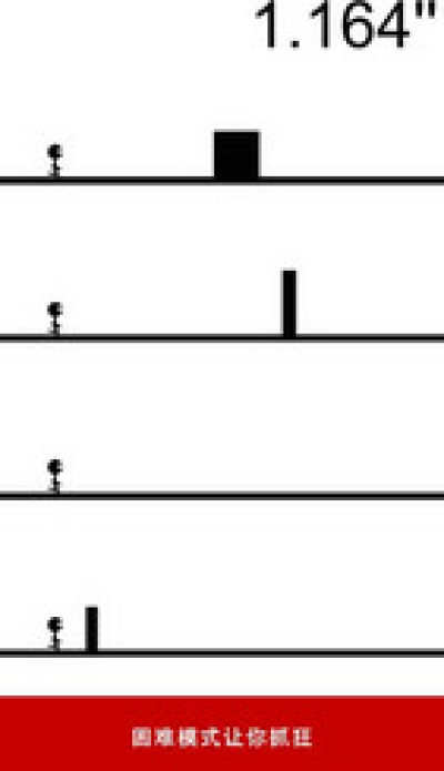 炼狱模式:玩家要同时控制5名火柴人,游戏屏幕被四等分为五条跑道,玩家不能让其中的任何一个火柴人撞到障碍,游戏难度相当虐心呀,游戏以时间作为成绩。