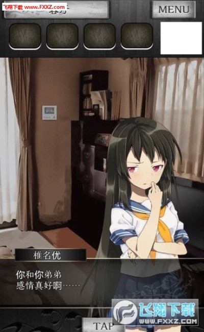 向右一步回到刚才的房间,点击背景的柜子(相框里是男主和他弟弟),用钥匙打开柜子,得到一张纸片(剪报?)。