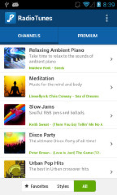 电台音乐RadioTunes提供了超过75个频道的按类型分类的最佳音乐。每一个频道都是由真正的相关风格中的专家电台管理者添加的音乐。在这里你可以找到所有你喜欢的风格,包括Pop, Rock, 70’s, 80’s, 90’s, Smooth Jazz, Romantic, Easy