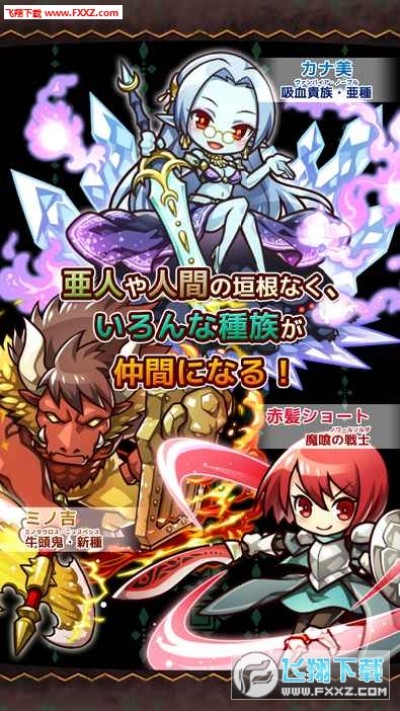 登场的角色有亚人,兽,人类3个种族,总有150只以上。超越种族的界限,用自己喜欢的角色,向敌人战斗!