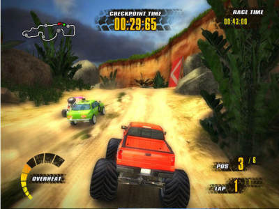 丛林赛车手是今年Hand Made Games发行的一款赛车游戏,游戏体积很小画面却十分精致,而且车辆很丰富,有怪物大脚车、拉力赛车、皮卡、手推车,在一起相互竞争。多尝试撞击对手而赢得比赛。游戏共具有三种比赛模式。