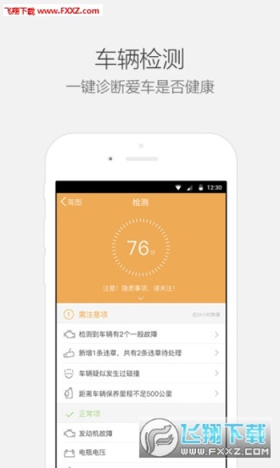安驾宝典app是一款专业的汽车服务软件,让将汽车与手机连接起来,为车主提供汽车检测,车辆定位,出行导航,油耗统计,车位预约,道路救援,保养维护,违章查询,汽车交友等汽车生活服务,让每一位车主享受舒适驾驶生活。