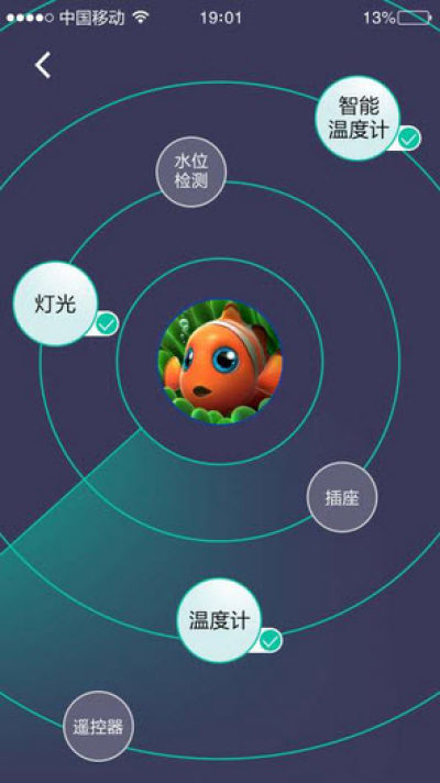 智能水族app是一个养鱼必备神器,你可以用它来检测鱼缸里的水质情况和水温,包括鱼缸灯光效果等等,让你的鱼能有个更好的生活环境,同时也能让你的养鱼生活更加的轻松,现在很多养鱼的人都在用该手机软件,有需要的朋友可以试试哟!