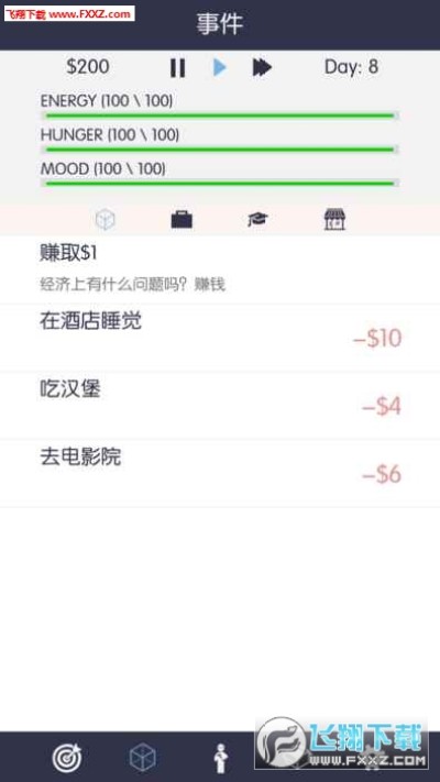 然后你有饥饿值,情感值,还有体力值去工作,你可以做你任何想做的事