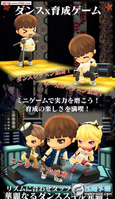 游戏操作十分简单,仅需要一根手指就可以尽情享受游戏的乐趣。同时,每一支舞蹈都会带给你不同的故事。当然,你还可以任意打扮自己的角色,来吧,开启你的巡回演唱之路。