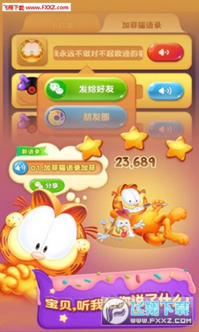 《加菲猫爱消除国服官方版》游戏的故事围绕我们的主角加菲猫展开,而且还有大家熟悉的其他小可爱也将一一登场!游戏以爽快流畅的消除手感,绚丽缤纷的消除效果,独创的微策略闯关玩法,趣味与挑战并存的关卡,清新诱人的美食风格以及加菲猫动画原班人马的倾情配音,带给玩家高品质的动感消除体验。