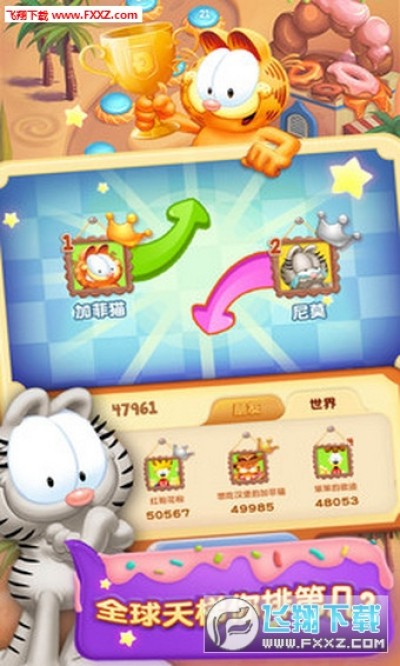 2、明艳亮丽的卡通风画面,完美再现蠢肥萌“加菲猫”