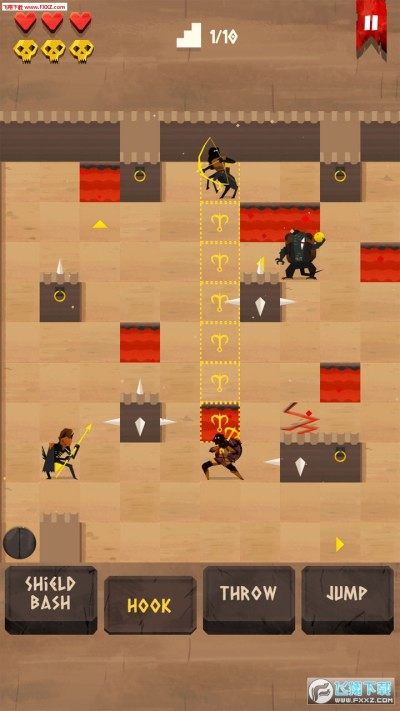 这款游戏,不禁让小编想起了《铁钩侠》,格子类型的策略回合游戏。玩家控制角色,通过抓钩、战盾等消灭敌人。利用抓钩可以把敌人拖下岩浆,用战盾可以发起冲撞、投掷等动作。游戏包含 Roguelike 元素,挺好玩的,也有一定难度。
