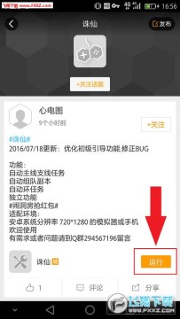 3、进入诛仙手游辅助专区后,选择推荐的诛仙手游辅助脚本点击“运行”;