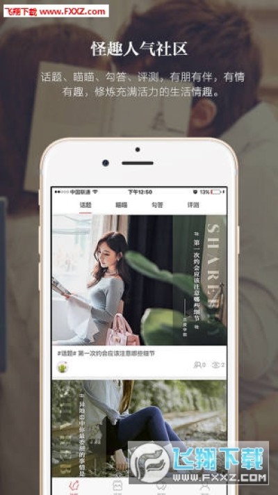 1.社群:一个集话题、瞄瞄、勾答、评测多功能为一体的有趣社交板块。