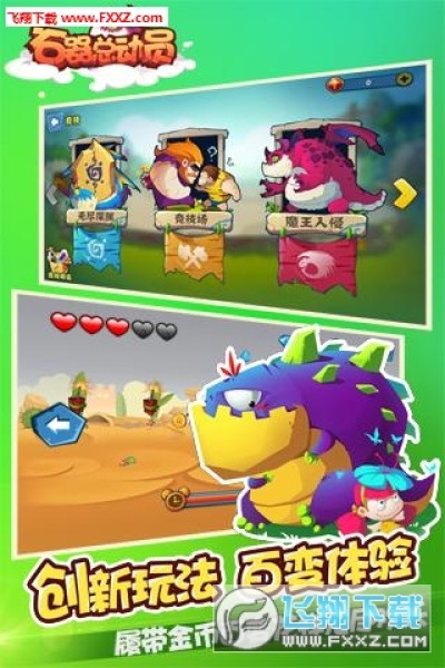 2016最IN的休闲大作《石器总动员》推出全新玩法,集合了对战、塔防、卡牌等多种元素于一身的划时代手游《石器总动员》横空出世!超过300位Q萌野兽原始人伴你左右,轻松闯关打Boss!实时在线1V1,与世界各地的部落酋长一较高下!组团副本部落战,开荒的乐趣无需多言!赶快喊上你的小伙伴一起来吧,重新定义只属于你的石器时代!