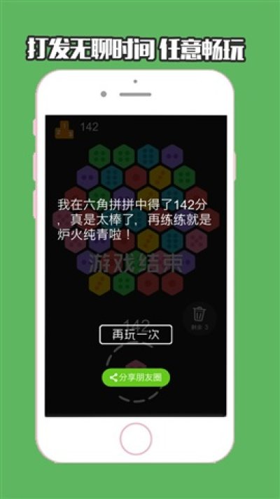 《六角拼拼游戏app》是最新在朋友圈和微博上兴起的一款休闲类手机游戏。游戏以三消为主要玩法,以1+1>2的机制为基本原则。游戏的内容和设定十分简单,但是玩起来却十分容易上瘾。特别是对于高分有所追求的你,更是玩的停不下来!喜欢的小伙伴们赶紧下载体验吧!