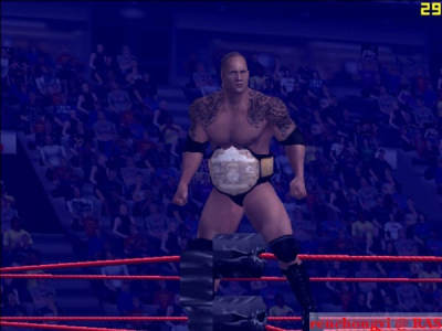 另外,关于格斗,游戏中还有一些奇怪的规定。比如说,如果你的对手疲惫了,靠在绳栏上休息,此时你是不能攻击对手的,这个规定是非常荒谬的,因为在职业摔跤比赛中格斗是最重要的部分。《世界职业摔跤》的画质看上去基本上与Xbox版本一样好。摔跤选手的造型非常的精致,保持了每个选手的特征,比如说身上的刺青图案和一些手势,比如说选手Rock的粗眉毛。大部分选手的出场都制作得很好,模拟电视上的选手的动作。另外还有一些设计得比较夸张的动作模糊效果,当玩家在场内搏斗的时候,画面看上去有一点儿褪色了。大多数入场音乐都很符合当时的时间背景,真实的反映了WWE的发展史,但是游戏中没有任何解说词。至于比赛进行中的背景音乐则比较普通了,但是倒还算是蛮符合游戏的主题的。